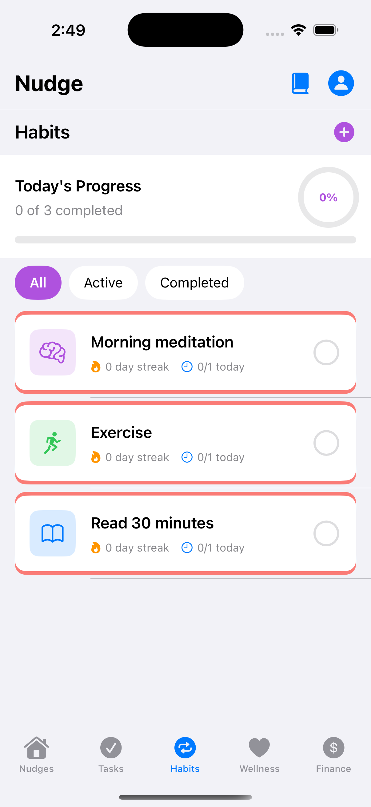Capture thoughts naturally with voice, text, or photos. Nudge uses AI to organize your wellness, habits, finances, and tasks—then gently reminds you at the perfect moment.